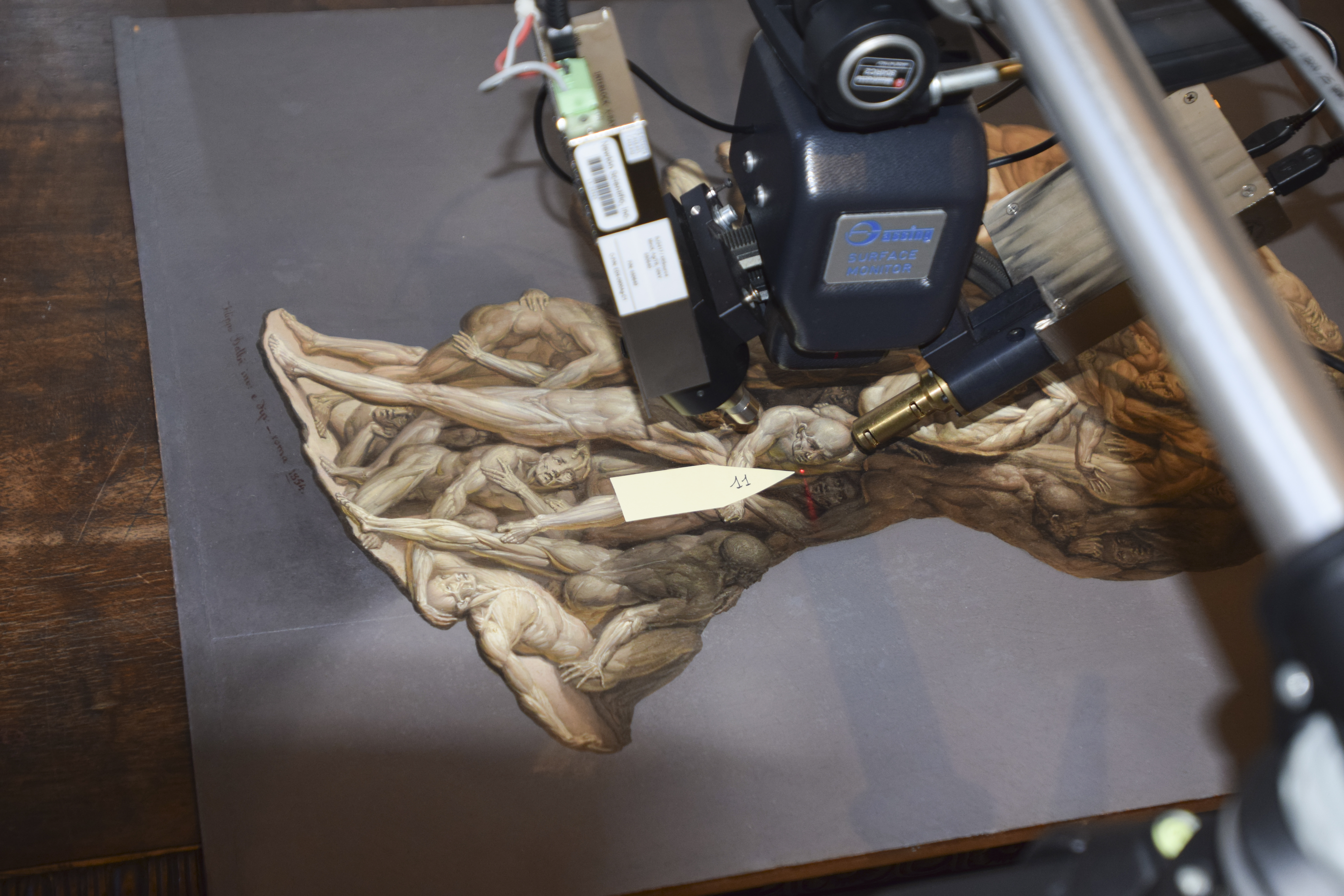 In questi mesi di lavoro, durante i quali ho seguito le varie tappe che l’hanno scandito, osservando da vicino, con partecipazione ammirata, come la storia che volevamo raccontare (perché ogni mostra deve raccontare una storia inedita) si andasse componendo con coerenza in tutti i suoi aspetti (basta leggere i saggi di questo catalogo, che per una “singolarità” sorprendente, pensati e scritti autonomamente l’uno dall’altro, alla fine sembrano passaggi di un’unica tela narrativa) ho vissuto un momento di emozione profonda. É capitato quando ho visto le foto delle indagini diagnostiche del dipinto: il quadro passato ai raggi infrarossi, posto sotto i riflettori nei suoi diversi quadranti che ne portavano in evidenza i primi sicuri tratti compositivi.