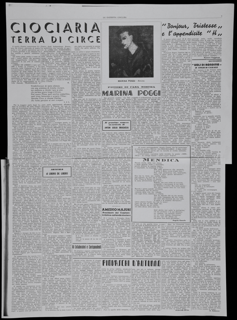 Stento a credere che Bragaglia non conoscesse Landolfi, stento anche a credere che Landolfi non conoscesse Bragaglia. Un anno prima, nell’ottobre del 1954, Landolfi era stato chiamato in causa, sempre sulla “Gazzetta Ciociara”, da Libero De Libero in un articolo intitolato “Ciociaria terra di Circe” e che aveva provocato una polemica nella quale si erano infilati il critico d’arte Michele Bianconi, docente di storia dell’arte all’Università di Roma, sorano, e lo stesso Anton Giulio Bragaglia.