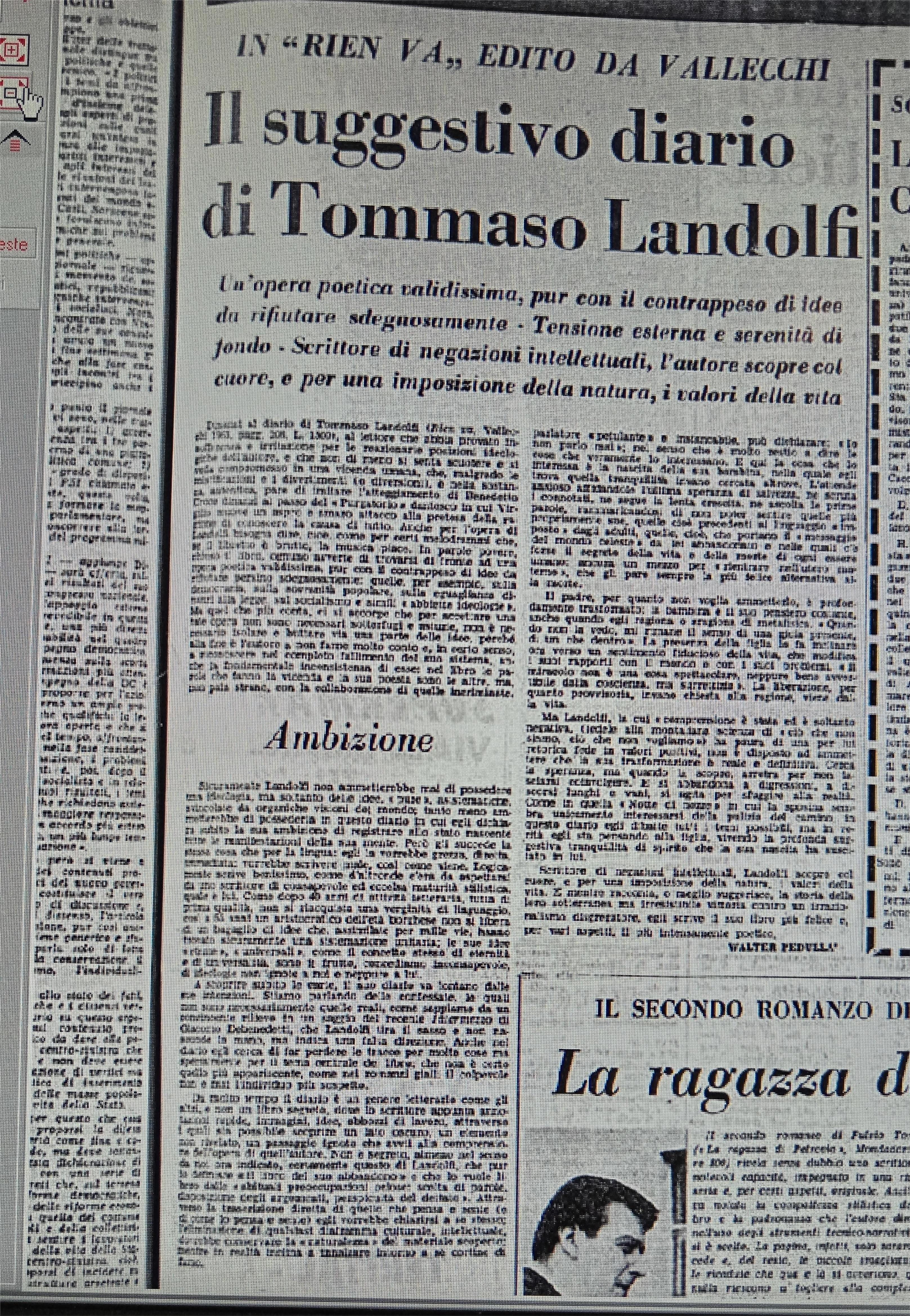 E infine aggiunge di sentirsi “amico della verità ma più amico di Landolfi”, per ribadire che lo scrittore meritava fiducia e gli si poteva perdonare qualche prova meno felice.
